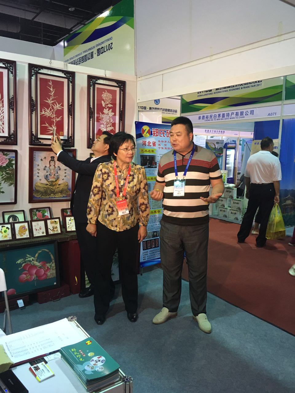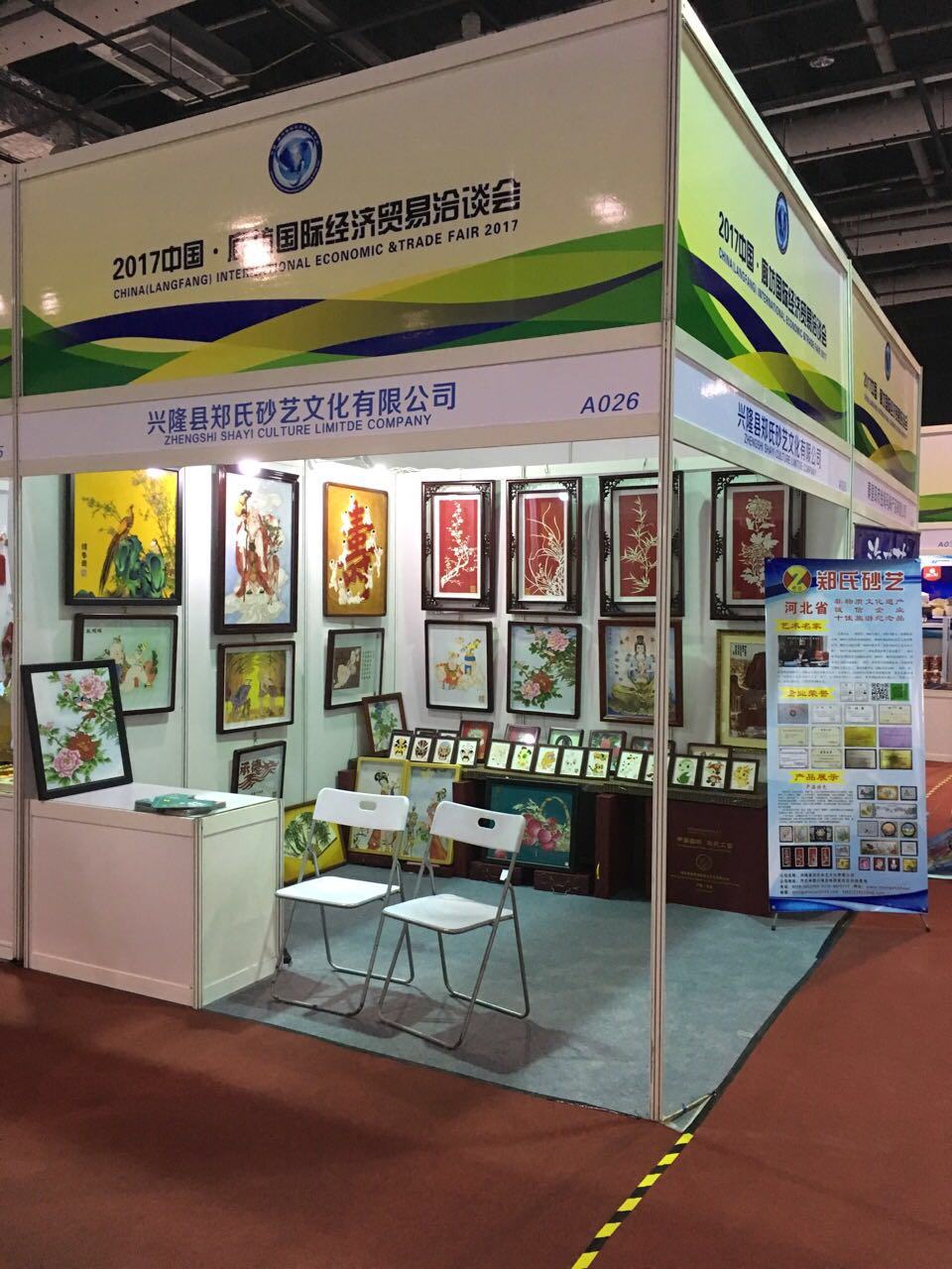 本月18日,我公司參加由河北省商務(wù)廳組織的“5.18國際經(jīng)濟(jì)貿(mào)易洽談會(huì)”。展會(huì)為期4天,由多個(gè)省份和包括外商在內(nèi)的近千家企業(yè)參與了本次會(huì)展。19日下午,承德市市長常麗虹、副市長蘇鐵成、縣商務(wù)局局長徐勝濤、副局長張學(xué)敏前來視察工作,并參觀了我公司的砂畫作品,對(duì)我公司純手工制作的砂畫表示了肯定,并對(duì)我公司今后的發(fā)展提出了寶貴建議。