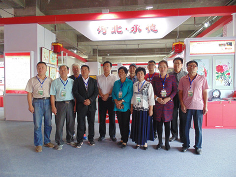 承德市文廣新局局長董宇、副局長馮寶忠與參展的承德企業(yè)代表在展館合影