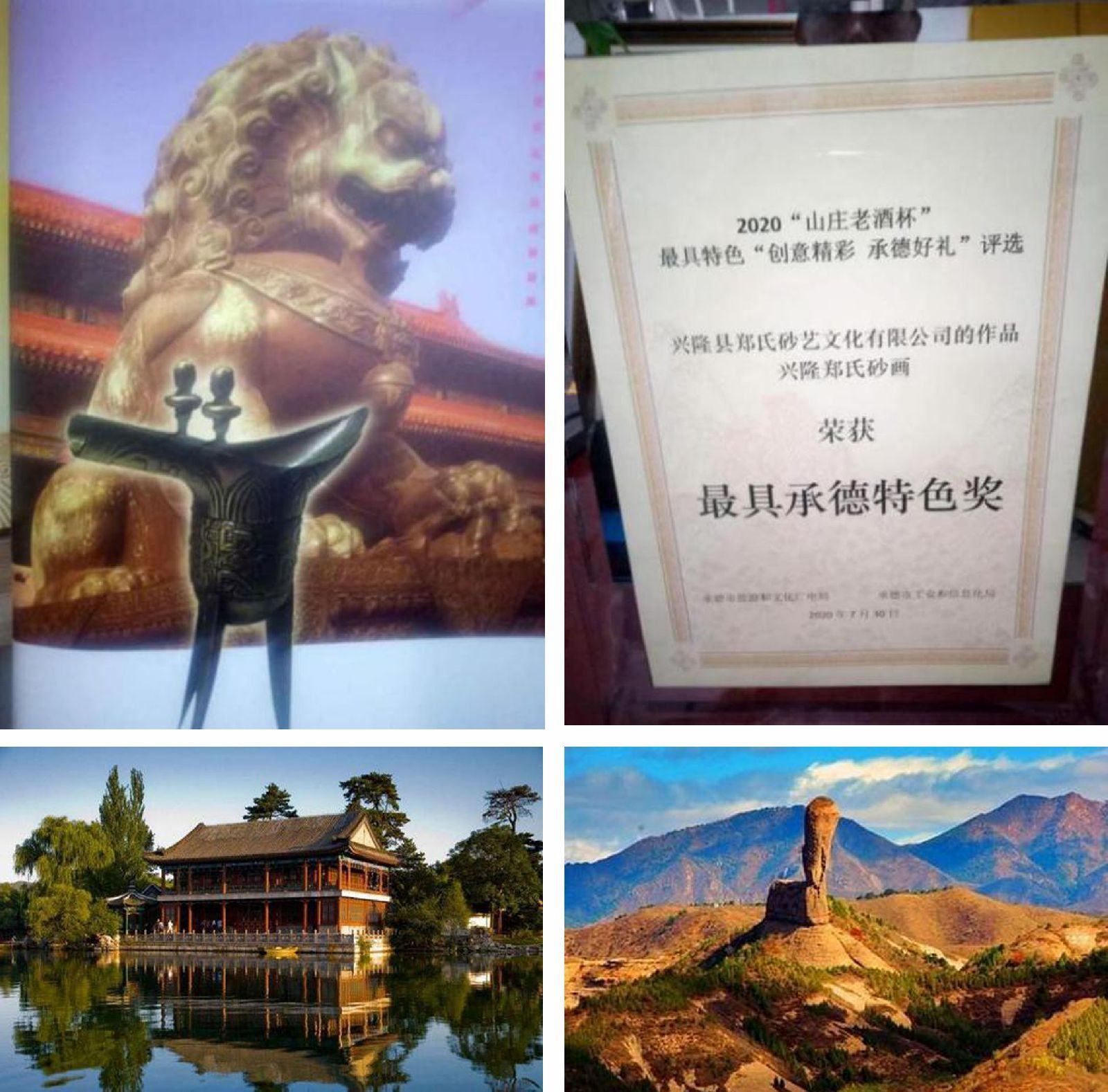 9月10日。在承德市舉辦的2020“山莊老酒杯”承德最具特色的“創(chuàng)意精彩,承德好禮”評選頒獎儀式暨山莊老酒文化產(chǎn)業(yè)園4A級旅游景區(qū)授牌儀式上,我縣鄭氏砂藝文化有限公司選送的砂畫作品,榮獲“最具承德特色獎”。