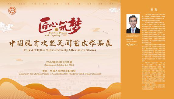 由中國人民對(duì)外友好協(xié)會(huì)主辦的“匠心筑夢(mèng)—中國脫貧攻堅(jiān)民間藝術(shù)作品展”于10月24日(聯(lián)合國日)正式開幕。中國人民對(duì)外友好協(xié)會(huì)會(huì)長林松添大使題寫前言,聯(lián)合國代理駐華協(xié)調(diào)員桑愛玲女士向展覽發(fā)來賀詞。