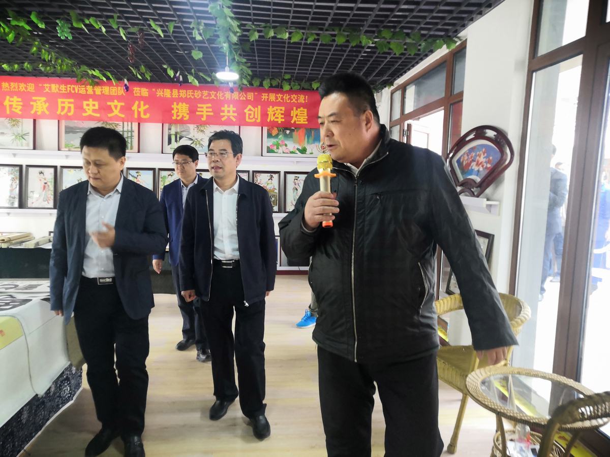 郭旭濤等領(lǐng)導(dǎo)聽取了公司的發(fā)展歷程、產(chǎn)品特色和非遺扶貧的介紹后,對我公司的非遺傳承和發(fā)展表示稱贊和肯定,并對公司未來的發(fā)展提出了新的要求和期望。他指出要不斷優(yōu)化企業(yè)發(fā)展環(huán)境,在今后的發(fā)展中要加強(qiáng)文旅產(chǎn)品研發(fā),提高鄭氏砂藝“非遺”產(chǎn)品的市場競爭力,為促進(jìn)地區(qū)“非遺”文化產(chǎn)業(yè)發(fā)展做出更大的貢獻(xiàn)。