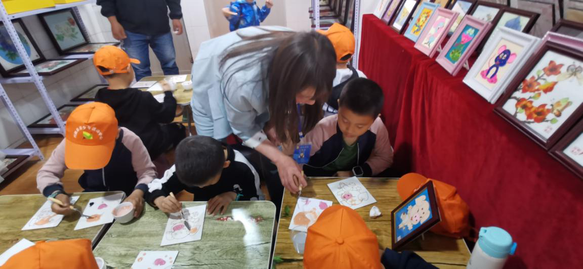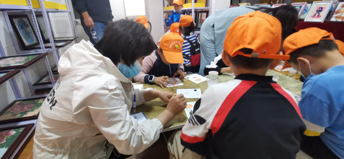參加此次研學(xué)活動(dòng)的師生共計(jì)180余人,小朋友們?cè)谖夜局v解員的帶領(lǐng)下興致勃勃的參觀了鄭氏砂畫,了解了鄭氏砂藝“非遺”文化的發(fā)展歷程、工藝技術(shù)和傳承意義,觀看了砂畫制作解析視頻,最后進(jìn)行了砂畫的實(shí)際操作。
