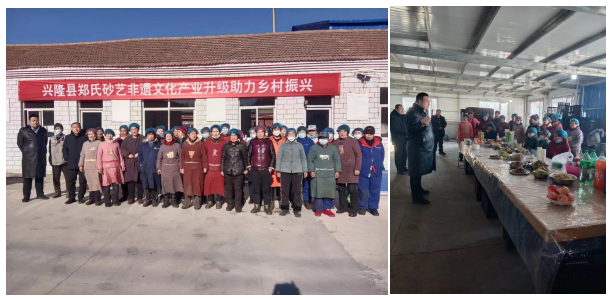 2021年11月,企業(yè)選址興隆縣李家營下臺子村原小學成立興隆縣鐵金研學基地,并結(jié)合當?shù)剞r(nóng)村農(nóng)民的農(nóng)業(yè)種植情況,組織當?shù)?03戶村民自愿聯(lián)合成立了農(nóng)民專業(yè)合作社,建立了鄭氏砂藝非遺文化產(chǎn)業(yè)升級助力鄉(xiāng)村振興就業(yè)工坊。在企業(yè)的引領(lǐng)下合作社展開了農(nóng)產(chǎn)品收購和初加工業(yè)務(wù),此舉不但解決了農(nóng)民的就業(yè)問題,也解決了農(nóng)產(chǎn)品的銷售問題,切實的帶動了當?shù)厝罕娋徒蜆I(yè)、增收致富。