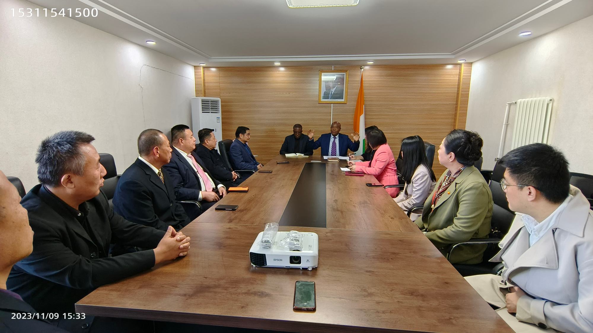 會議期間,科特迪瓦駐華大使館文化參贊、科特迪瓦駐華大使館旅游參贊、科特迪瓦駐華大使館商務參贊同鄭鐵軍董事長進行了愉快高效的交流。鄭鐵軍董事長詳細介紹了鄭氏砂藝(畫)的產品特色和經營方針,并現(xiàn)場展示了鄭氏砂藝(畫)非遺藝術品,大使館對鄭氏砂藝作品的技藝和精美程度表示驚嘆和贊揚,并邀請鄭鐵軍董事長考察科特迪瓦!