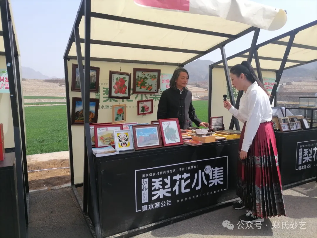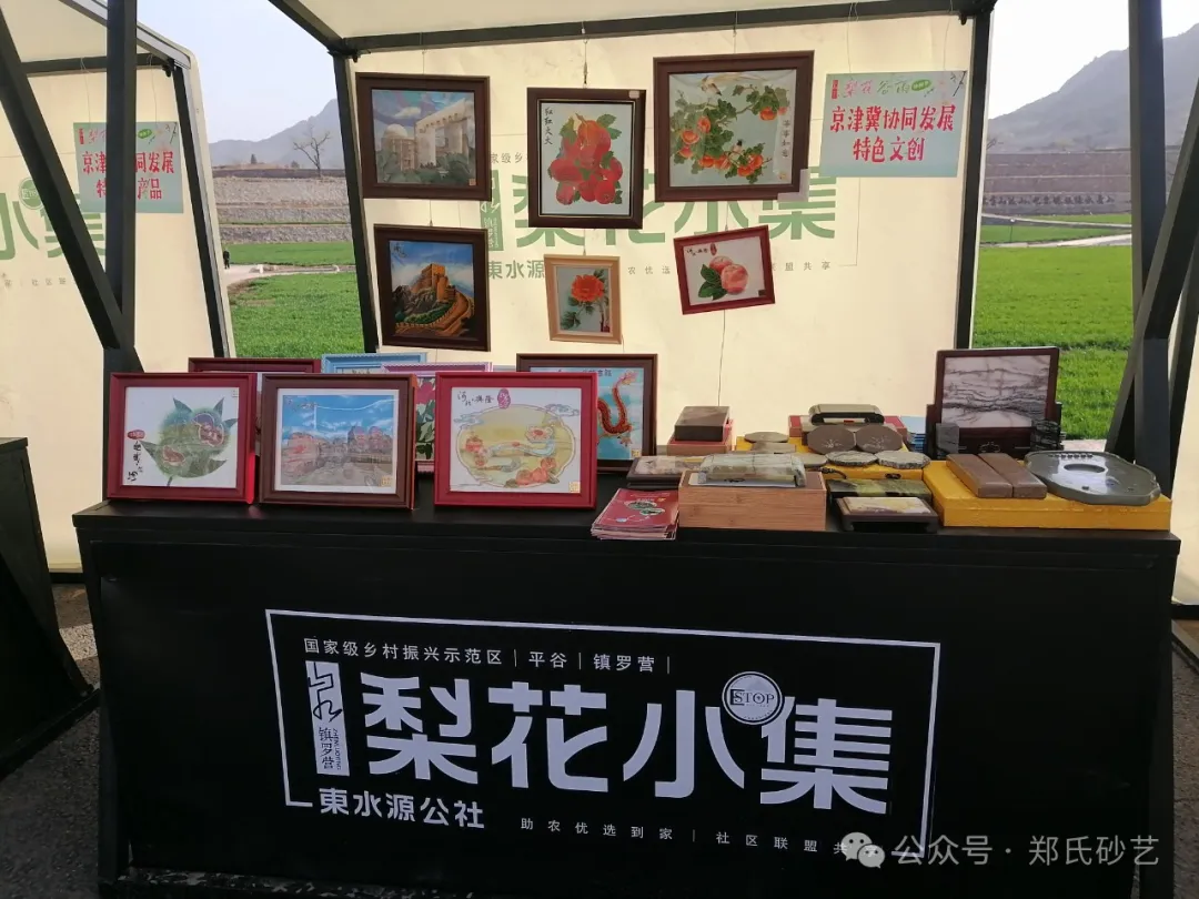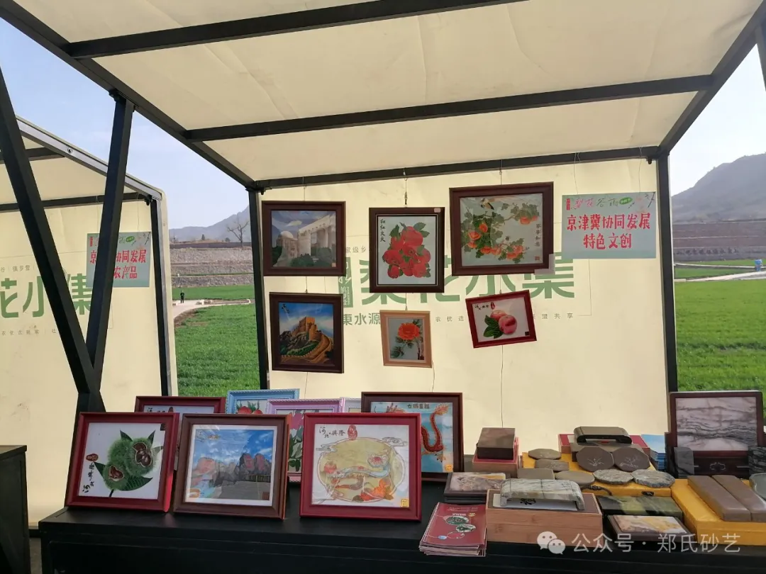 “忽如一夜春風(fēng)來,千樹萬樹梨花開” 春風(fēng)正好,花開有期。2024年4月8日上午,北京市平谷區(qū)鎮(zhèn)羅營鎮(zhèn)人民政府舉辦的以“千載梨花頌、花漾鎮(zhèn)羅營”為主題的梨花谷雨文化節(jié)活動(dòng)拉開帷幕,為營造“傳統(tǒng)文化+梨花美景”的活動(dòng)氛圍,鄭氏砂藝受邀參加了此次活動(dòng),并精心挑選了20余幅精品砂畫參加展出,展出作品涵蓋了紅火(山楂)、吉利(板栗)、平安(蘋果)、天文臺(tái)、興隆山風(fēng)光等興隆地區(qū)眾多的特色產(chǎn)品和獨(dú)特景點(diǎn),展出期間,鄭氏砂藝(畫)作品以其材質(zhì)的新穎獨(dú)特,制作手法的精妙絕倫,畫面內(nèi)容的豐富多彩,吸引了眾多游客駐足觀賞,成為了自媒體和游客的拍攝打卡地。鄭氏砂藝用自己的藝術(shù)方式充分地向北京人們展示了興隆的文化特色,同時(shí)為平谷“梨花節(jié)”增添了濃厚的文化氣息。