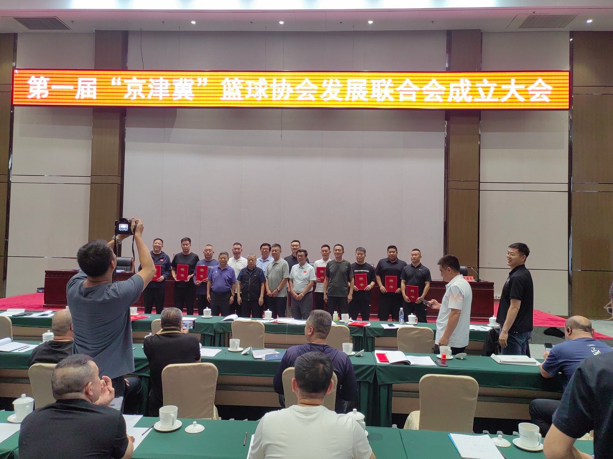 2024年9月12日上午,第一屆“京津冀”籃球協(xié)會發(fā)展聯(lián)合會成立大會于在北京市懷柔區(qū)雁棲湖勝利召開,參加會議的有北京市通州區(qū)籃球運動協(xié)會主席曹國虎、北京市懷柔區(qū)籃球協(xié)會主席李鳳亮、北京市大興區(qū)籃球協(xié)會主席張海忠、北京市平谷區(qū)籃球運動協(xié)會主席張亞東、北京市門頭溝區(qū)籃球協(xié)會主席王會、北京市密云區(qū)籃球運動協(xié)會主席王懷平、北京市西城區(qū)籃球?qū)I(yè)委員會關雨、北京市東城區(qū)籃球運動協(xié)會主席董瑋、北京市朝陽區(qū)籃球運動協(xié)會主席劉杰、北京市房山區(qū)籃球運動協(xié)會主席馬德亮、北京市懷柔區(qū)神韻訓練基地王潘磊、天津市武清區(qū)籃球協(xié)會主席楊瑞偉、天津市西青區(qū)籃球運動協(xié)會主席趙犀、天津市東麗區(qū)籃球協(xié)會主席徐海泉、天津濱海新區(qū)籃球協(xié)會主席趙國萍、天津市北辰區(qū)籃球運動協(xié)會主席賈蔚亞、天津市寶坻區(qū)籃球協(xié)會主席王懷瑤、天津市薊州區(qū)籃球協(xié)會主席蘇昌亮、天津市寧河區(qū)籃球協(xié)會主席馬立勇、河北省廊坊市籃球運動協(xié)會主席裴羅江、河北省廊坊市香河縣籃球協(xié)會主席劉棟、河北省廊坊市三河市籃球協(xié)會主席孫明明、河北省廊坊市大廠回族自治縣籃球協(xié)會主席張金凱、河北省廊坊市文安縣籃球協(xié)會主席相東、河北省廊坊市霸州市籃球協(xié)會主席閆寶光、河北省廊坊市固安縣籃球協(xié)會主席楊衛(wèi)華、河北省承德市興隆縣籃球協(xié)會主席鄭鐵軍、副主席李柏林、河北省滄州市任丘市籃球協(xié)會主席賈建松、河北省滄州市籃球協(xié)會主席張國強、河北豐寧滿族自治縣籃球協(xié)會主席何曉川等相關領導。