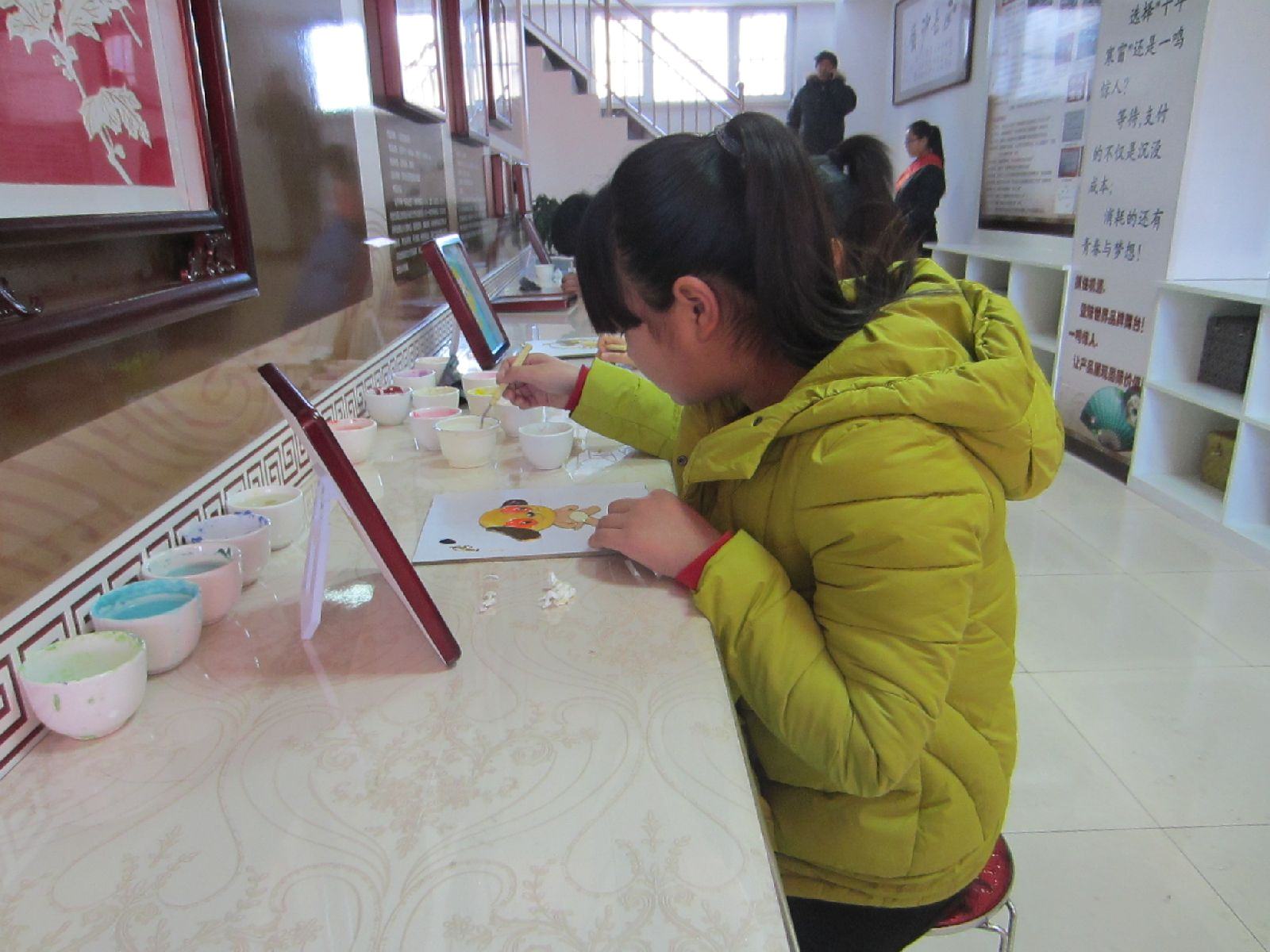 鄭氏砂藝文化體驗(yàn)館一開(kāi)業(yè),就受到了眾多學(xué)生和家長(zhǎng)的關(guān)注,許多砂畫(huà)工藝愛(ài)好者已紛紛投入了積極地制作當(dāng)中。